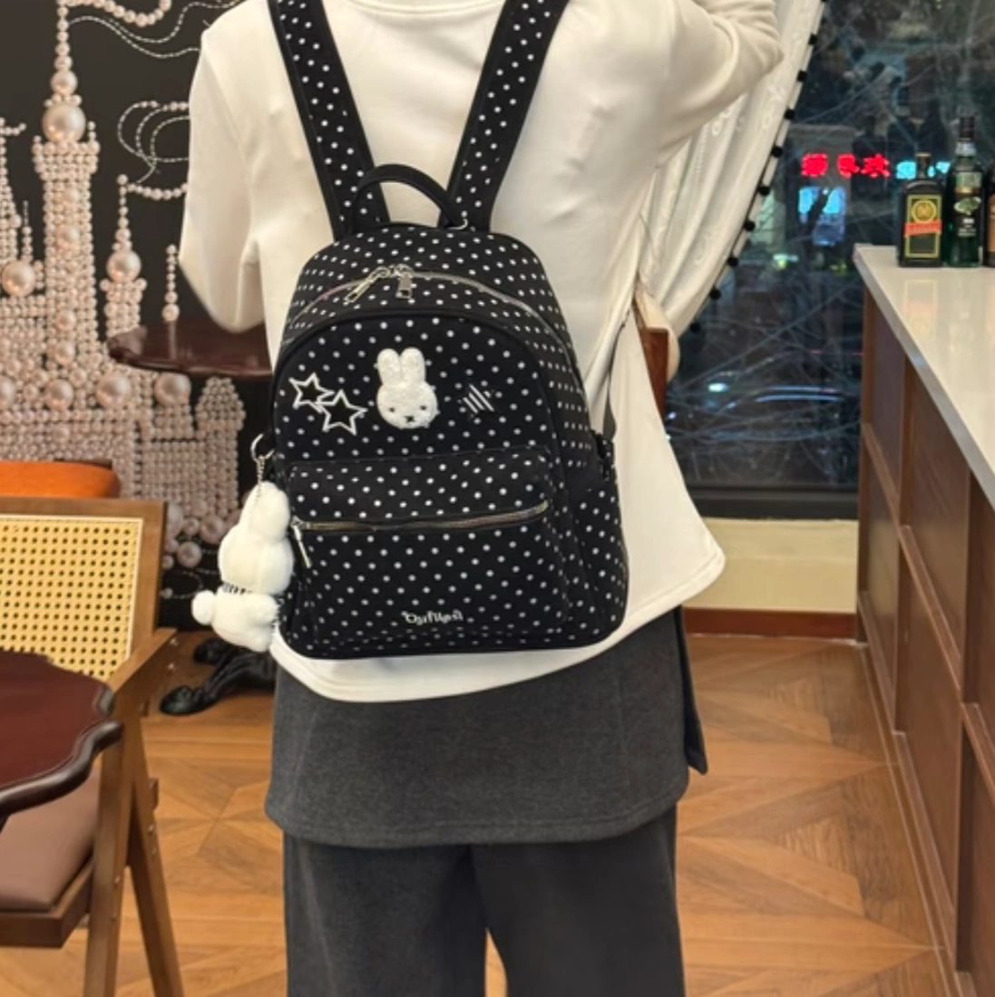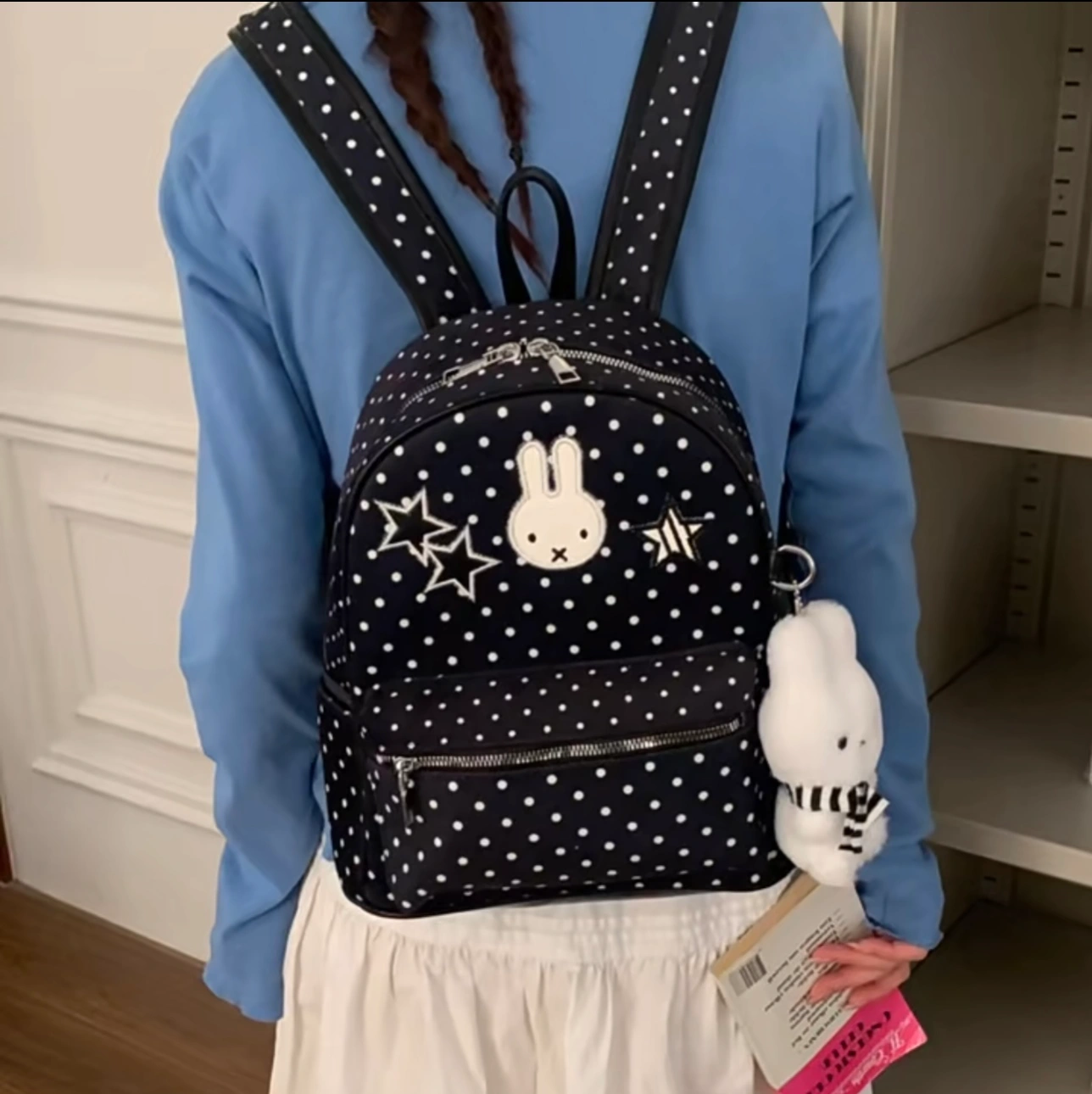 Cute size cute Miffy polka dot backpack with leather front