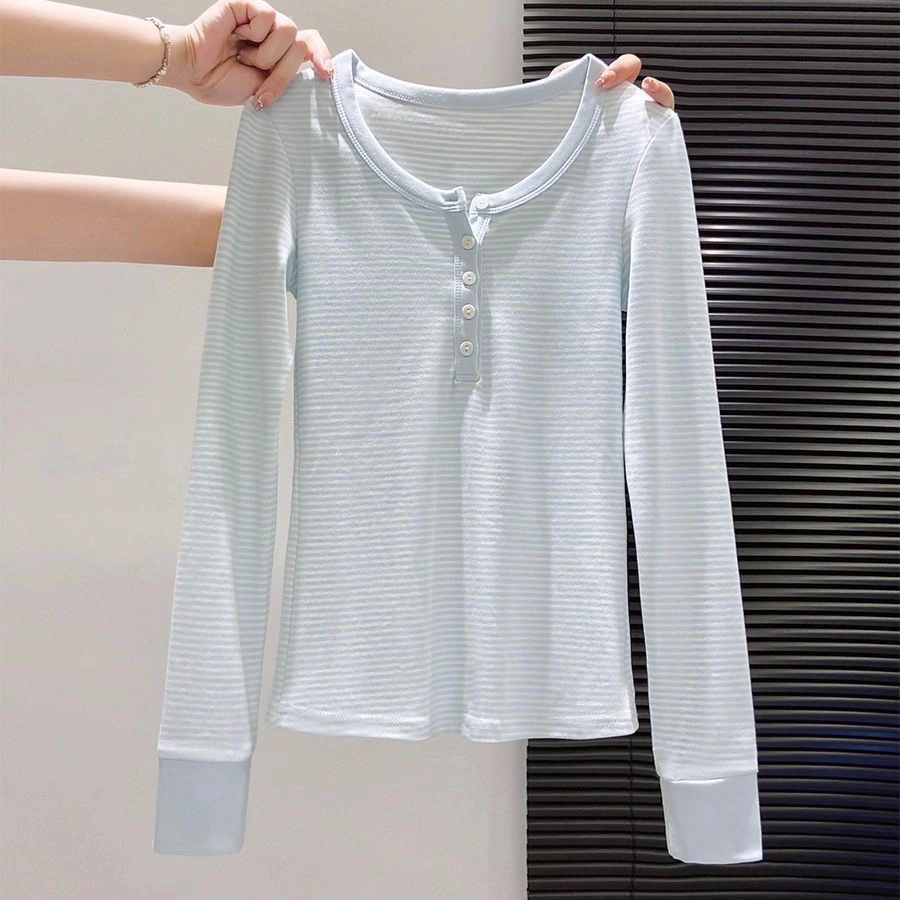 Pastel stripe henley top🪷