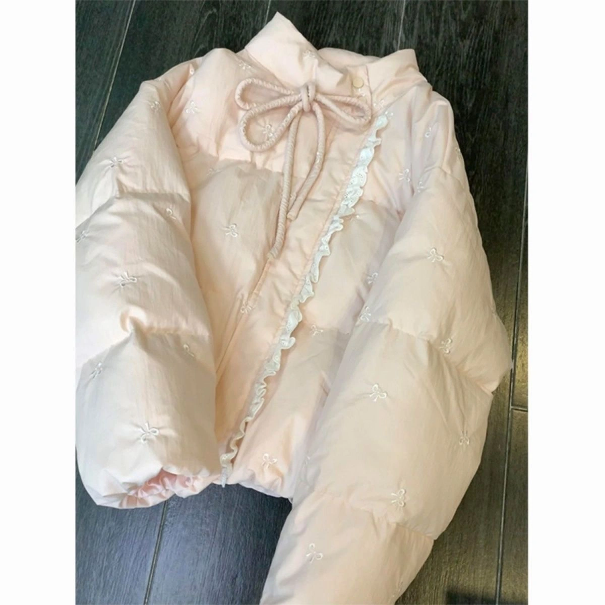Pink bow puffer jacket…….