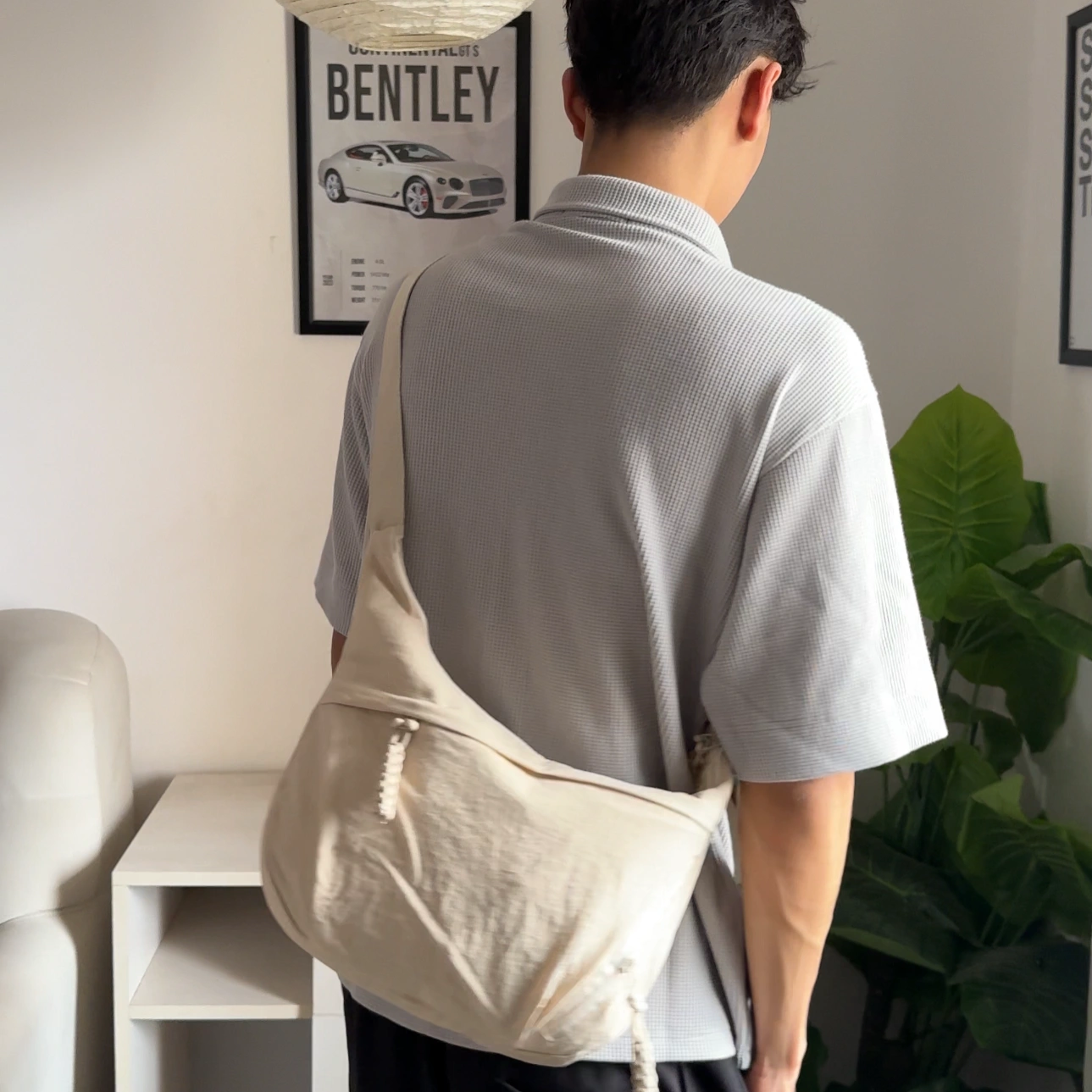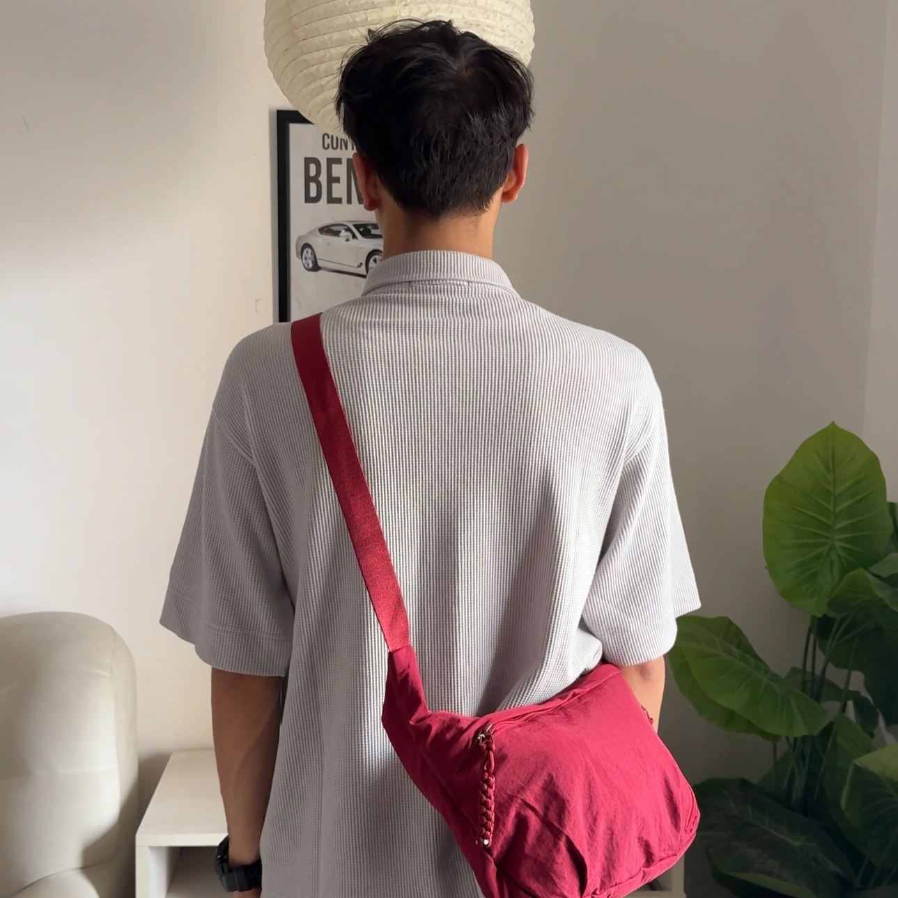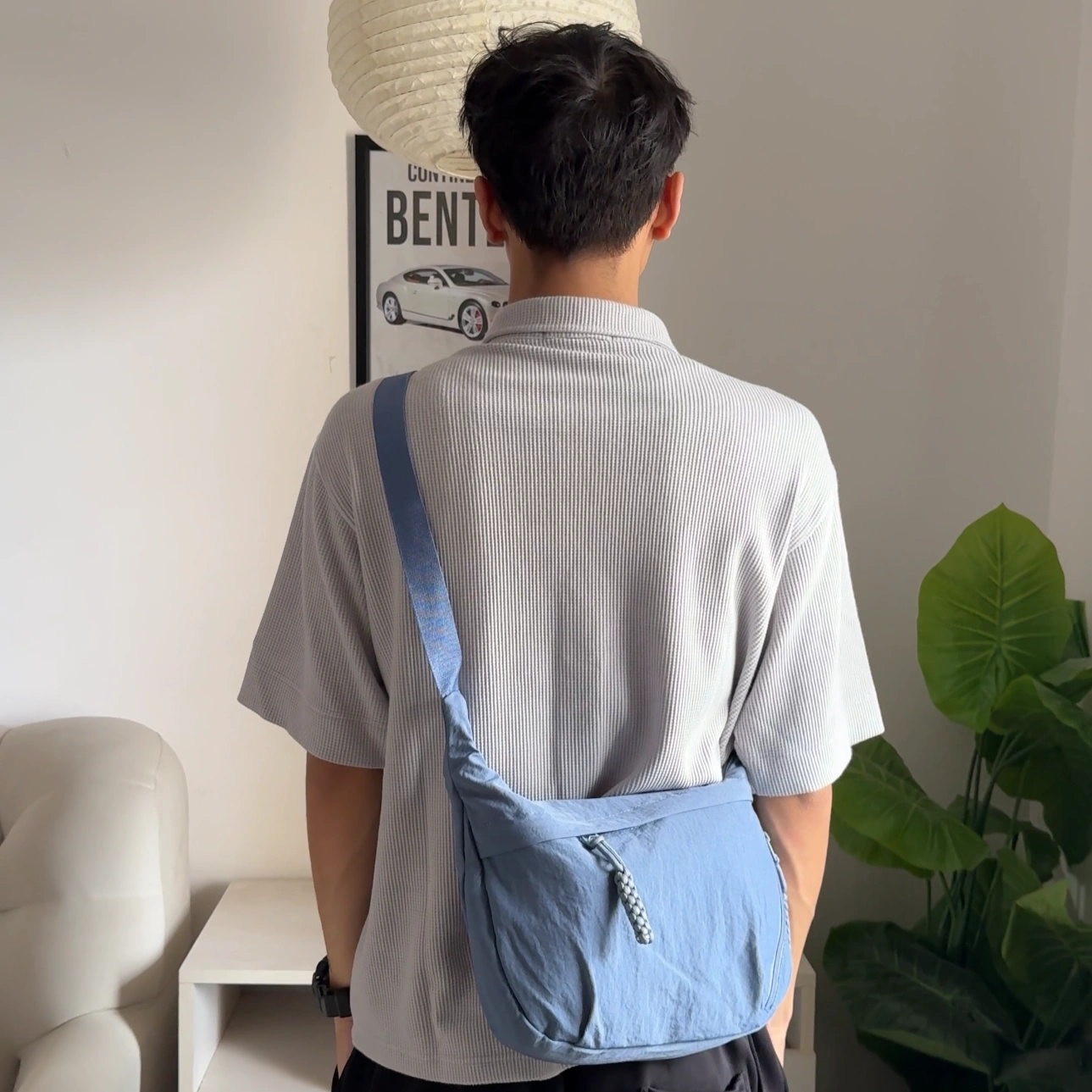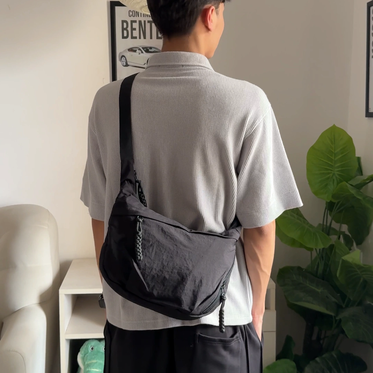 loved by everyone for its multipockets. suitable for everyone any age for daily use .has padded compartment inside to keep your techs safe .medium size and spacious adjustable strap